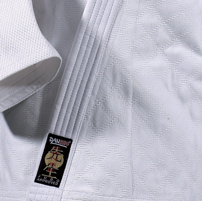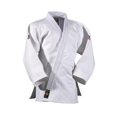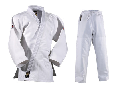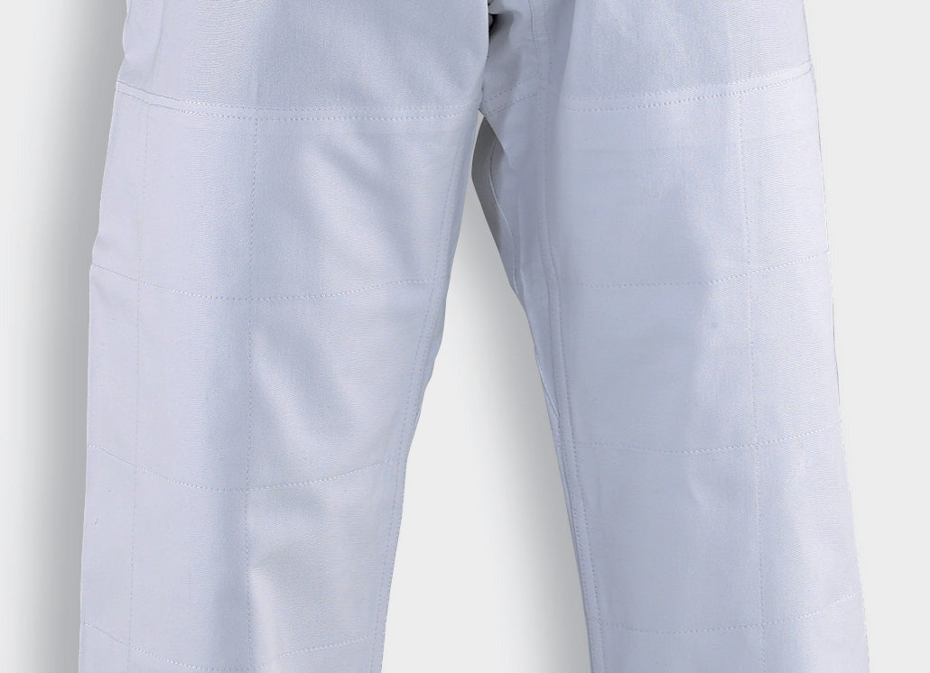 Middle weight uniform ideal for training and competition. The model is double weaved (approx. 750 g/m2) and made of 100% high quality cotton. Jacket includes back seam, and reinforcements on the shoulders, chest, and under the armpits. Pants features drawstring waistband and reinforcements on the knees.