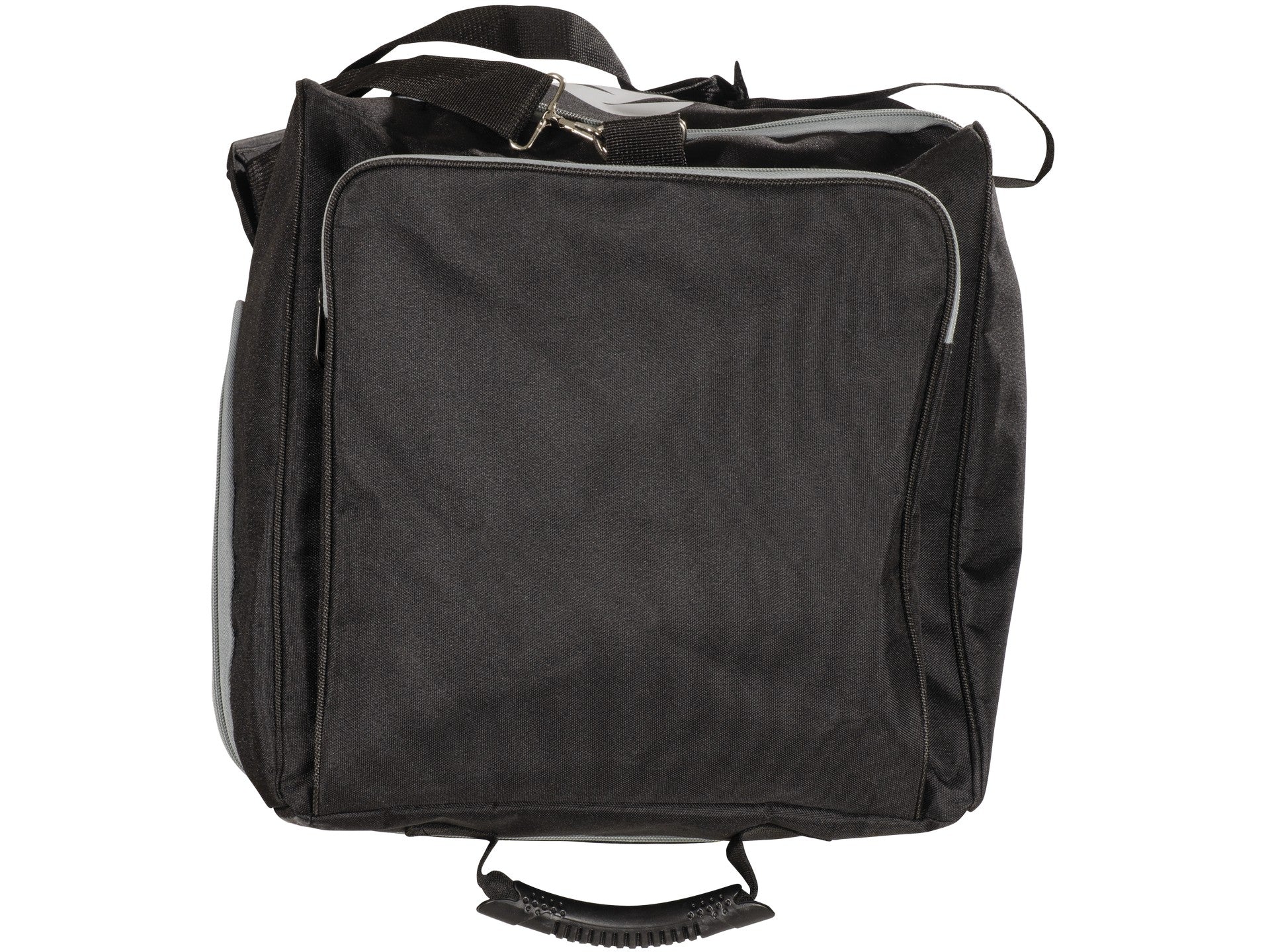 Made of durable polyester material. Featuring shoulder strap and one side pocket and front pocket for additional storage. Carrying strap can be stowed in the bottom of the bag.