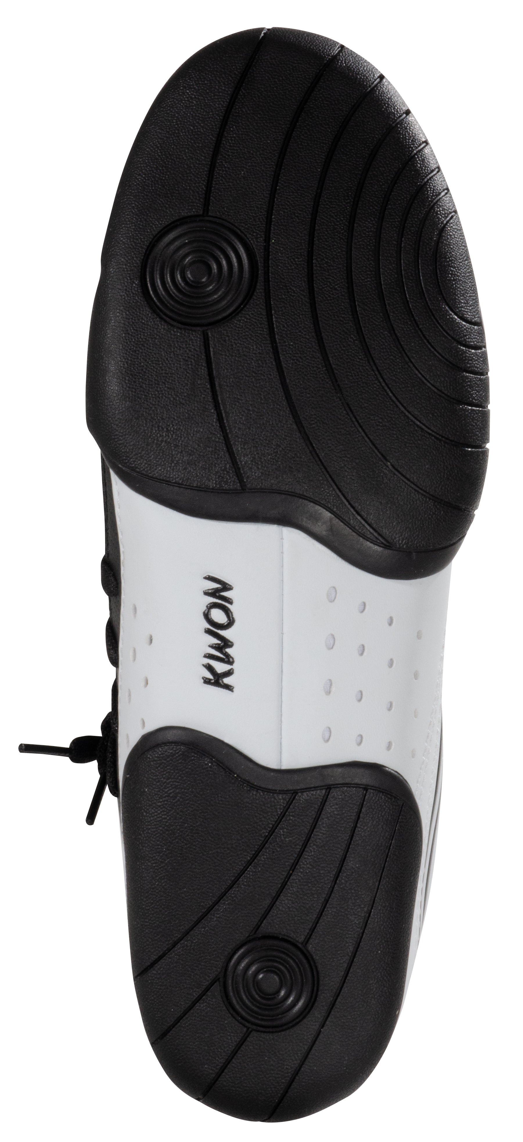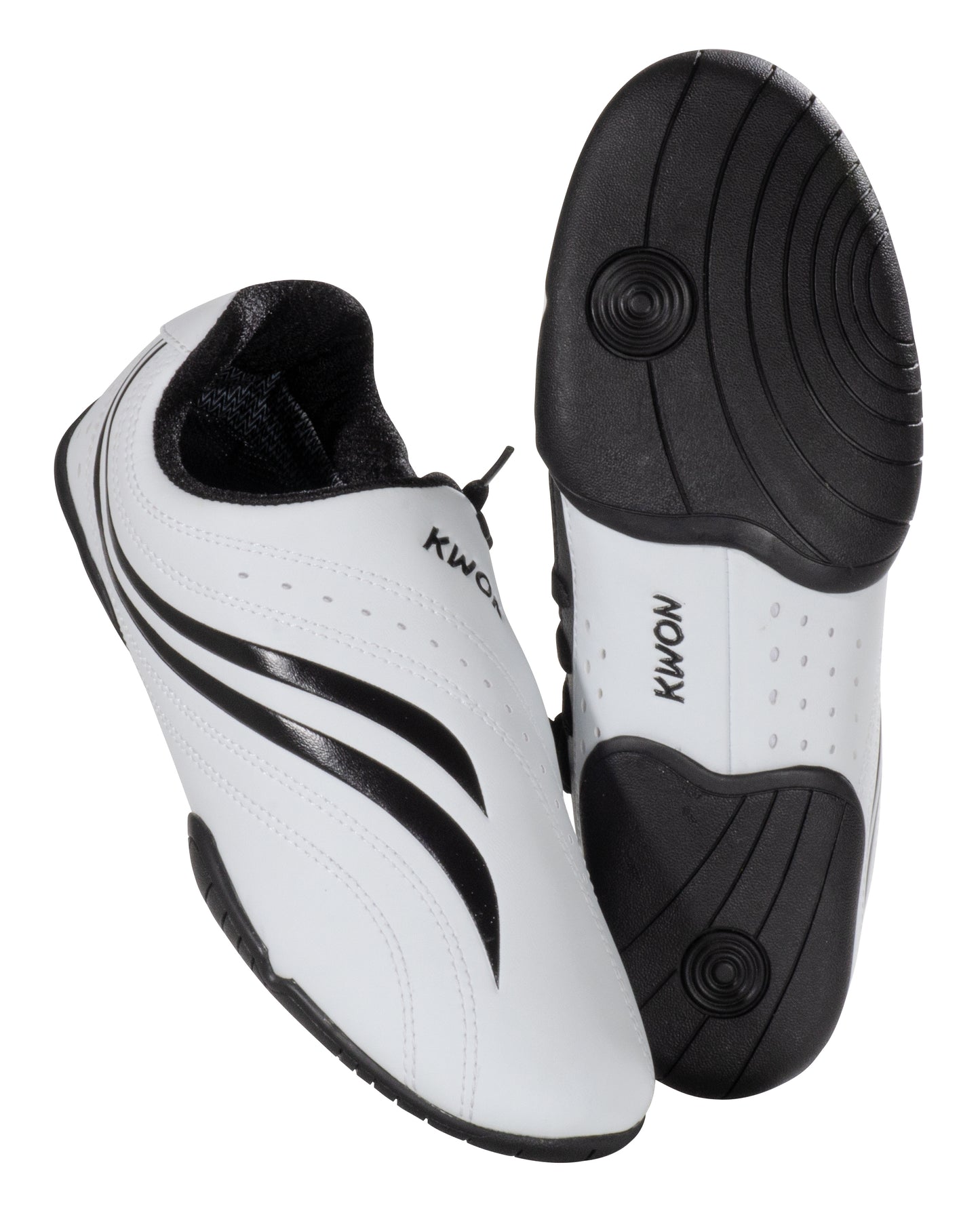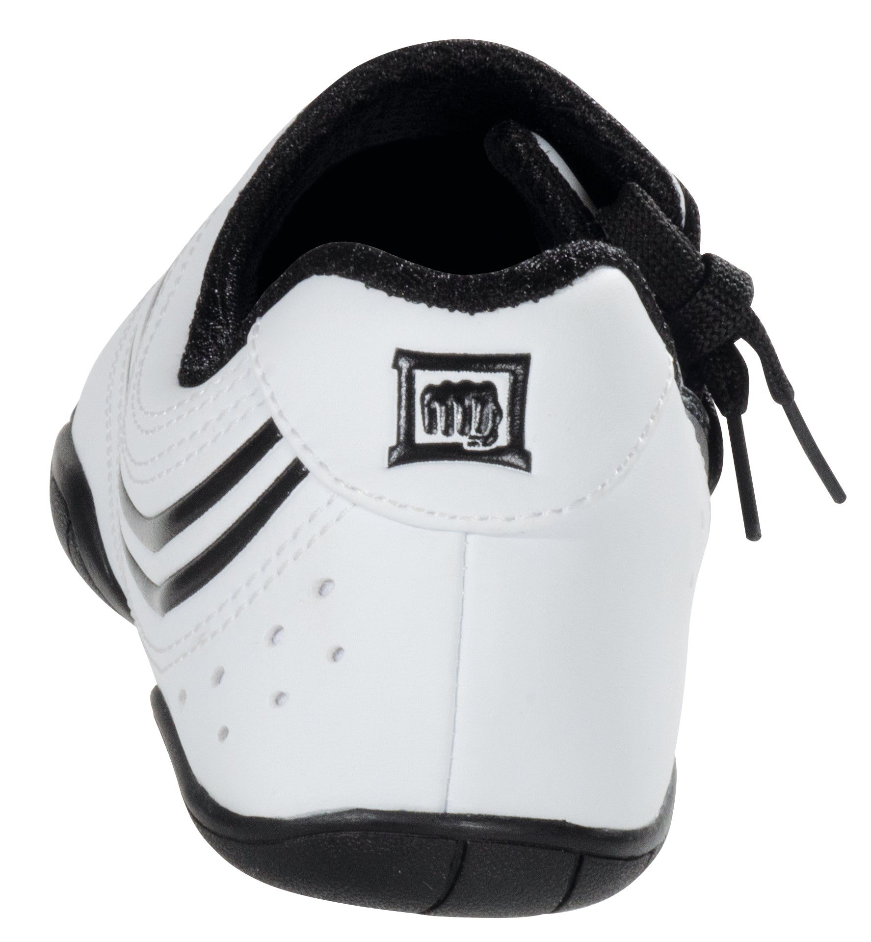 Made of high-quality artificial leather. Ideal for Taekwondo, Karate, and other Martial Arts styles. Extra thin sole for a good barefoot feel while still providing the ground contact necessary for performing techniques. Sole is divided in three parts. Heel and forefoot area are made of soft black rubber for optimal support. Soft upper and side lacing reduce the risk of injury to training partners. White with black stripes. Available in men's sizes 3.5, 4.5, 5.5, 6, 7, 7.5, 8.5, 9.5, 10, 11, 11.5. Sold as a pair.