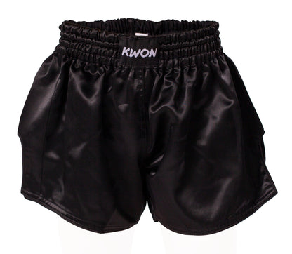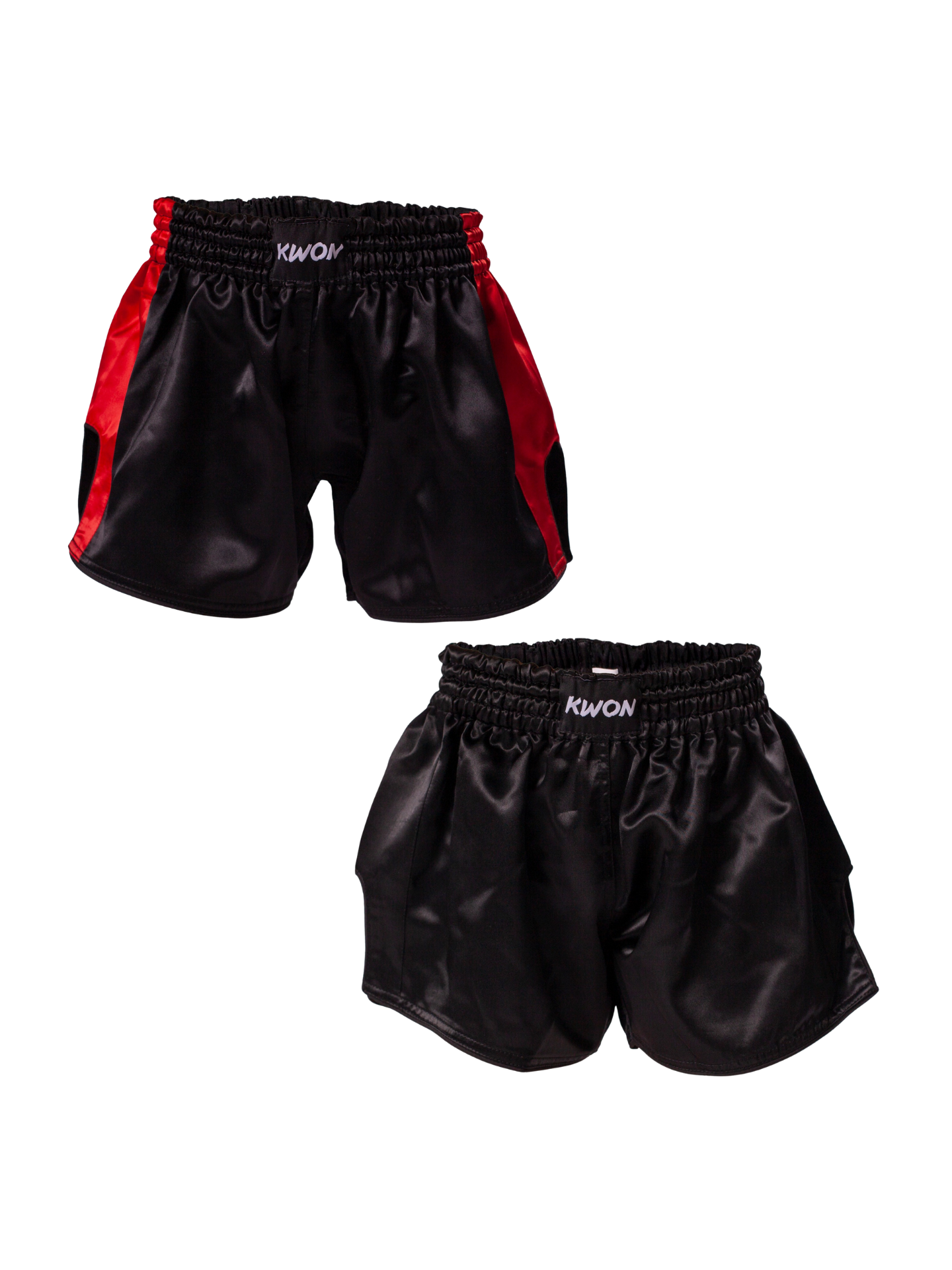 Made of shiny 100% polyester material with colored side stripes and side slits. Great shorts at a reasonable price! Available in Black w/ red stripes or solid Black.